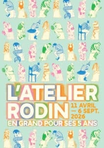 Le nouvel espace « Au Labo ! » ajoute cette année cinq séances de pratique encadrée – du modelage au carnet de croquis – accessibles sur réservation. Le billet au Musée Rodin donne accès à l'ensemble pour les adultes accompagnateurs ; les moins de 26 ans et tous les enfants entrent gratuitement. Sur l'affiche signée Jade Favre-Nicolin, Le Penseur se réduit à quelques lignes et des aplats de couleurs vives.