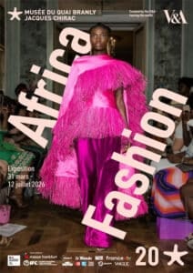 L'exposition « Africa Fashion » se tient au musée du quai Branly – Jacques Chirac du 31 mars au 12 juillet 2026, dans la Galerie Jardin. Conçue par le Victoria and Albert Museum de Londres après six étapes internationales, elle déploie sept sections croisant création contemporaine et collections historiques du musée. Textiles, accessoires, photographies et haute couture retracent plus de soixante ans d'invention stylistique sur le continent africain.