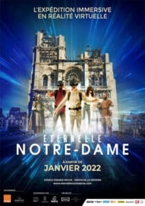 Les visiteurs sont équipés de casques immersifs pour explorer une reconstitution numérique de Notre-Dame de Paris. Sélectionnée en compétition officielle à la Biennale de Venise 2022 (Venice Immersive), « Éternelle Notre-Dame » a été récompensée par plusieurs prix, dont le VR Award de la meilleure expédition immersive, le prix Numix et le Laval Award « VR for a cause », soulignant son excellence dans le domaine des expériences immersives en réalité virtuelle.