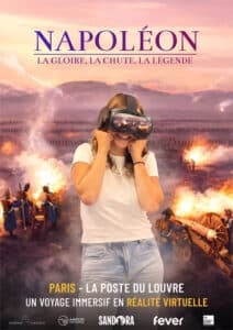 « Napoléon, l'Épopée Immersive » se tient du 26 novembre 2025 au 12 juillet 2026 dans l'ancienne Poste du Louvre, au 52 rue du Louvre. L'expérience ouvre un espace de 60 m² où le visiteur marche librement, casque vissé, au milieu d'images 3D validées par un comité de trois historiens.
