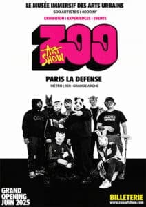 Avec ses 4 000 m² répartis sur cinq niveaux et ses 500 artistes de 28 nationalités, l'exposition Street art Paris « Zoo Art Show » offre un panorama sans équivalent de quarante ans d'art urbain. Le parcours permet de saisir la trajectoire du mouvement, du tag clandestin aux toiles exposées en galerie, à travers des centaines d'interventions réalisées sur place.